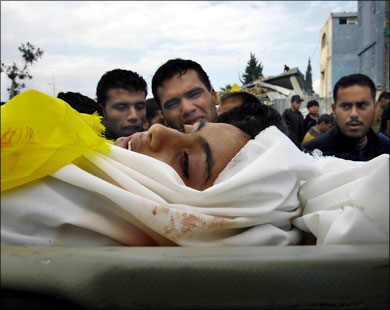 A young man is killed as his home is hit by Israeli rockets.