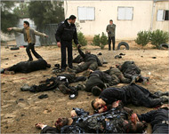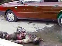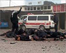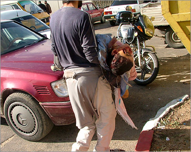 Again, paramedics try and evacuate a group of civilians from an area that was bombed.