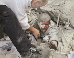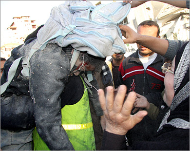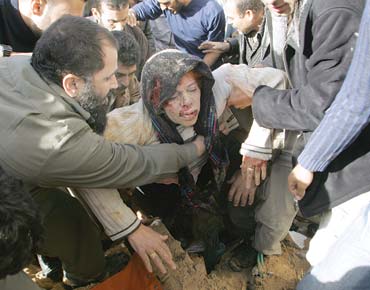 Paramedics attempt to rescue a family as their house is targeted by the Israeli air force